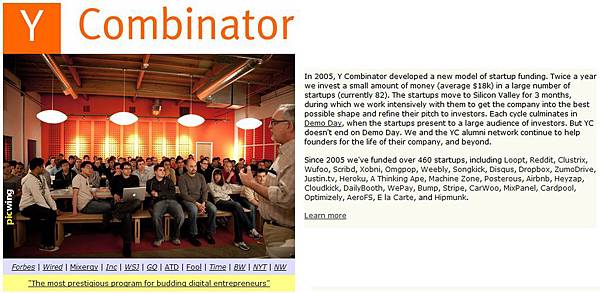 Y Combinator 已經有七年的歷史,現在是美國非常著名的育成創投,想要加入的團隊